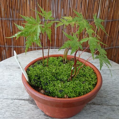 (苔の鉢 8月23日) 鉢土に苔(コケ)が生えてきました。 この鉢植えは イロハモミジの実生苗です。 2018年3月に発芽したモミジなので 1年半経過してようやく 苔が生えてきたことになります。 同じ年に発芽した他のモミジの鉢では 鉢土にあるていど苔が生え…